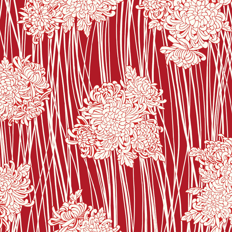 The flower depicted in this pattern is Rangiku, which has long petals blooming in a jumbled manner. Chrysanthemums have been revered since ancient times as a symbol of beauty and culture, conveying not only nobility but also the state of mind of the Japanese people. In Japan, it is a noble flower that is also used as the emblem of the imperial family. Red chrysanthemums mean love.